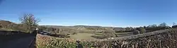 The part of the hamlet area east of the Huntsman's Hotel and north of the Usk Road (B4235) is included in the Wye Valley National Landscape, an Area of Outstanding Natural Beauty. The whole area is classed as a Special Landscape Area.[5] It includes Whitemill Common and Roughets Wood which are separated by Mounton Brook; they had been planted with spruce, larch and poplar from the mid-20th century. As part of continuing environmental improvement plans, many conifers were removed from 1995 and replaced with broadleaved species. Poplars were removed from the inventoried ancient woodland of the lower valley of Roughets Wood in 1999 (part of Whitemill Common by Mounton Brook is also in the inventory) and non-native or invasive species such as cherry laurel and Himalayan balsam cleared or managed. The riverside environment is now native again and semi-natural, containing species associated with ancient woodlands, including wood-sorrel, bluebells, primroses and pendulous sedge.[6]