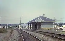 The New Haven Railroad folded into Penn Central in 1969, and passenger operations transferred to Amtrak on May 1, 1971. The station was in poor shape and closed to passengers; although ownership was uncertain, the property was claimed by Amtrak.[5] It was resumed as a station stop in 1974, but no passenger facilities were available.[7]