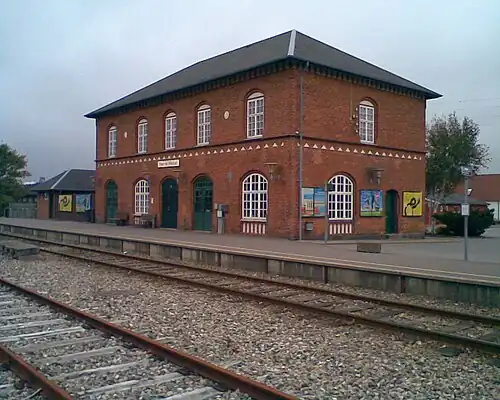 The original and still existing station building from 1903 was built to designs by the Danish architect Heinrich Wenck (1851–1936), known for the numerous railway stations he designed across Denmark in his capacity of head architect of the Danish State Railways.[4]