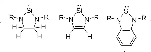 - ^ a b c d Denk, Michael; Green, Jennifer C.; Metzler, Nils; Wagner, Matthias (1994-01-01). "Electronic structure of a stable silylene: photoelectron spectra and theoretical calculations of Si(NRCHCHNR), Si(NRCH2CH2NR) and SiH2(NRCHCHNR)". Journal of the Chemical Society, Dalton Transactions (16): 2405. doi:10.1039/dt9940002405. ISSN 0300-9246.