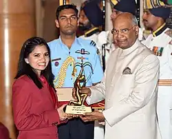 President Ram Nath Kovind presents the Arjuna Award to Reddy in a ceremony in New Delhi on 25 September 2018. | ||||||||||||||||||||||||||||||||||||||||||||||||||||||||||||