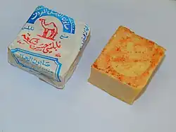 Al-Jamal (camel) brand of Nabulsi soap[1] with and without its paper packaging, 2014