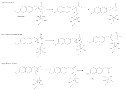 3. ^ Varfaj F, Zulkifli SN, Park HG, Challinor VL, De Voss JJ, Ortiz de Montellano PR (May 2014). "Carbon-carbon bond cleavage in activation of the prodrug nabumetone". Drug Metabolism and Disposition. 42 (5): 828–838. doi:10.1124/dmd.114.056903. PMC 3989788. PMID 24584631.
