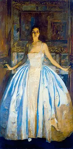 Her portrait in oil was painted in 1926 by Ettore Tito. It was donated by her husband to the Galleria Internazionale d’Arte Moderna in 1981,[20] two years before his death. Another portrait, by Olive Snell, featured on the front cover of the 4 December 1929 issue of The Sketch.[21][22]