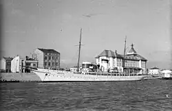 The yacht was then towed to Devonport, Plymouth and then to Clarence Dock, Liverpool for restoration.[24][25][26] The first phase of her restoration was delayed when her restorer, Cammell Laird, went into receivership in 2001.[1]