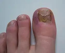 - ^ Erdoğan, Fatma Gülru; Güven, Münevver; Elhan, Atilla Halil; Gürler, Aysel. "Efficacy of Nail Brace Treatment For Ingrown Nails". Turkderm-Turk Arch Dermatol Venereol (in Turkish). 44 (2): 88–91.