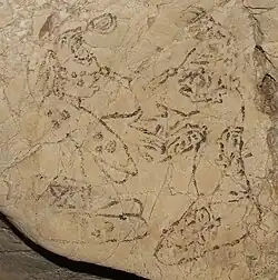 Naj Tunich also featured a great number of petroglyphs and paintings; as well as 500 hieroglyphs.[1] Naj Tunich is one of five caves which have been discovered to have Maya hieroglyphs.[17] Naj Tunich features the highest number of hieroglyphs of any Maya cave and the total number of hieroglyphs identified exceeds the number of all other Maya cave writing combined.[1][17] Archaeologists consider the artistic style at Naj Tunich as more refined than that of other Maya caves.[1]