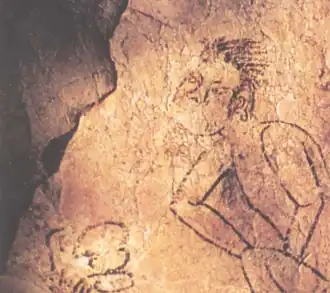 Stone stated that the cave had been vandalized several times by 1986 and that more serious vandalism occurred in 1989.[7] A news item stated that in 1989, unknown persons "scratched, scraped or smeared into oblivion more than 20 of the ... images and hieroglyphic texts".[8] The caves were closed to the public but copies of murals were painted in a replica cave; tours of that cave are available from a tour company.[9][10]
