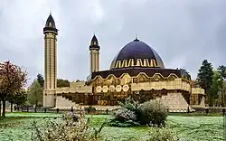 Nalchik (Russian: Нальчик, IPA: [ˈnalʲtɕɪk]; Kabardian: НалщӀэч, romanized: Nalṣ̂ăčʼ [naːɮɕʼakʲ]; Karachay-Balkar: Нальчик[13] or Налчыкъ[14][15], romanized: Nalçik or Nalçıq [naltʃɯk]) is the capital city of Kabardino-Balkaria, Russia, situated at an altitude of 550 meters (1,800 ft) in the foothills of the Caucasus Mountains; about 100 kilometers (62 mi) northwest of Beslan (Beslan is in the Republic of North Ossetia–Alania).[16] It covers an area of 131 square kilometers (51 sq mi). Population: 247,054 (2021 Census);[11] 240,203 (2010 Census);[17] 274,974 (2002 Census);[18] 234,547 (1989 Soviet census).[19]