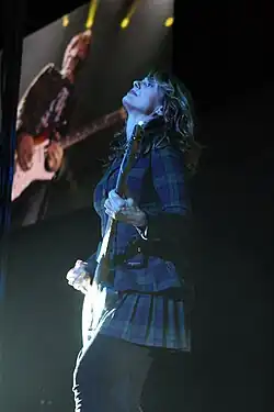 Wilson has been lauded for her guitar playing, noted for blending elements of flamenco and classical guitar styles with hard rock.[3] In 2016, Gibson ranked Wilson the eighth-greatest female guitarist of all time.[4] She is also an accomplished singer in her own right, being the lead vocalist in the song "These Dreams", which became Heart's first number-one single on the Billboard Hot 100. In 2013, Wilson was inducted into the Rock and Roll Hall of Fame as a member of Heart.[5]