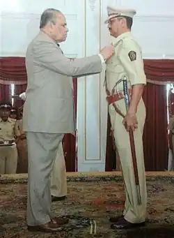 ![]() Nandkumar Chaugule receiving President’s Police Medal by Shri K Shankarnarayan-Hon Governor, for Meritorious Service in 2008 | |