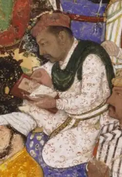 - Painting in a MS. of the Jahāngīr-nāma ('History of Jahangir'), c. 1618 (London, Victoria & Albert Museum, MS. IS. 185–1984), includes a self-portrait (shown above right);