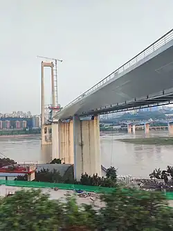 Nanjimen Yangtze River Bridge (Chinese: 南纪门长江大桥) is a rapid transit cable-stayed bridge that crosses the Yangtze to connect Yuzhong and Nan'an Districts in Chongqing. The bridge carries Chongqing Rail Transit Line 10 trains. It opened on 18 January 2023.[1]