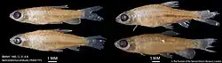 3. ^ Eschmeyer, William N.; Fricke, Ron & van der Laan, Richard (eds.). "Species in the genus Genus-Nannostomus". Catalog of Fishes. California Academy of Sciences. Retrieved 7 August 2025.