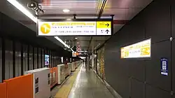 Platform 3, used for Keisei Main Line trains bound for Tokyo, is only long enough to accommodate six cars; therefore two cars of each eight-car Keisei Main Line trainset open onto Track 1, the Tokyo-bound Narita Sky Access Line platform. Keisei has installed special signage in this section of Track 1 to warn passengers not to board these cars.