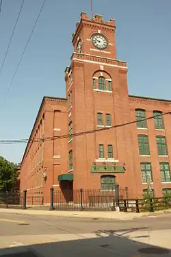 The Nashua Manufacturing Company Historic District in Nashua, New Hampshire, is a historic district that was listed on the National Register of Historic Places (NRHP) in 1987. It encompasses an area just west of downtown Nashua, roughly located along the southern bank of the Nashua River, bordered on the west side by Mine Falls Park, on the south side by the Nashua River canal, up to Ledge Street, and from the east side by Factory, Pine and Water streets, up to the Main Street bridge.[2]