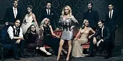 British actor Sam Palladio was the first regular member to be cast, being announced on February 14, 2012.[34] Australian actress and singer Clare Bowen was the next addition to the pilot, as Scarlett O'Connor, on February 17, 2012.[35] On February 22, General Hospital cast member Jonathan Jackson joined the cast in the role of Avery Barkley.[36][37][38] On February 23, Emmy Award winner Powers Boothe joined the cast as Lamar Wyatt, father of lead character.[39] On February 29, it was announced that Hayden Panettiere had landed the role of Juliette Barnes, originally planned as the primary antagonist of the series.[40][41] On March 1, 2012 Robert Wisdom was cast as Coleman Carlisle, one of the supporting regular characters.[42] On March 5 Eric Close joined the ensemble cast as Teddy Conrad, Rayna's husband.[43] On March 6, it was announced that Connie Britton would play leading role of Rayna Jaymes, 40-year-old fading country superstar.[44][45][46] Britton also serves as a co-executive producer of the series. On March 13, 2012, Charles Esten joined the cast in the final regular role of Deacon Claybourne, Rayna's bandmate and former lover.[47]