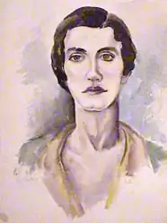 For many years Henry shared an apartment with Rowena Fry at the Lambert Tree Studios building, and Henry depicted her in the watercolor Rowena Washing Her Hair sometime during the 1930s.[6]