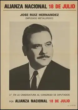 National Alliance July 18 (Spanish: Alianza Nacional 18 de Julio, AN18) was a far-right nationalist electoral coalition in Spain, formed ahead of the 1977 elections by New Force of Blas Piñar, Círculos Doctrinales José Antonio and Carlist Traditionalist Communion.[1] July 18 refers to the day on which the Nationalist forces under the leadership of Francisco Franco launched a military uprising in 1936.