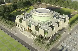 The National Assembly Building of Vietnam (Vietnamese: Tòa nhà Quốc hội Việt Nam), officially the National Assembly House (Nhà Quốc hội)[6] and also known as the New Ba Đình Hall (Hội trường Ba Đình mới), is a public building located on Ba Đình Square across from the Ho Chi Minh Mausoleum in Hanoi, Vietnam. Construction started on October 12, 2009, and finished on October 20, 2014. The building is the meeting place of the National Assembly of Vietnam, and hosts major conferences held by the Communist Party of Vietnam.