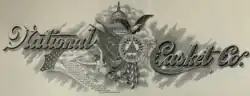 Philip B. Heintz of Boston took over from Hamilton as manager of the National Casket Company in 1922.[1] The company pioneered a standard branch layout containing offices, a warehouse, and several "selection rooms" for clients to choose from the company's products, all within a single building.[2] During the 1920s, the company was a distributor of funeral cars made by the Kissel Motor Car Company, selling around 200 a year. the company was a distributor of[12] In his 1924 A Magician Among Spirits the escapologist Harry Houdini recalled successfully escaping from a casket made by the company.[13] The company had challenged Houdini to make an escape from a heavy-duty hickory coffin whose lid had been secured with 6-inch (150 mm) screws.[14] After the 1929 death of Ol' Rip the Horned Toad the National Casket Company provided a casket for display of his body.[15] In 1944 one of the company's suppliers was the piano maker Steinway & Sons, who had diversified into coffin manufacture.[16] The National Casket Company was a pioneer in the use of fiberglass-reinforced plastic coffins in lieu of more expensive bronze versions.[17]