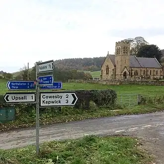 National Cycle Network signpost in Kirby Knowle, North Yorkshire.