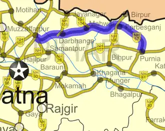Former National Highway 57 linked Muzaffarpur to Purnea in the Indian state of Bihar. It was 310 km (190 mi) long.[1] In 2010 the national highway numbering system was rationalized and renumbered.[2] The entire stretch of the old national highway 57 is now part of new National Highway 27.[3]