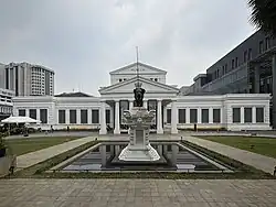 The National Museum of Indonesia (Indonesian: Museum Nasional Indonesia) is an archeological, historical, ethnological, and geographical museum located in Jalan Medan Merdeka Barat, Central Jakarta, right on the west side of Merdeka Square. Popularly known as the Elephant Museum (Indonesian: Museum Gajah) after the elephant statue in its forecourt, its broad collections cover all of Indonesia's territory and almost all of its history. The museum has endeavoured to preserve Indonesia's heritage for two centuries.[1]
