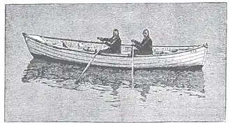 In 1896, the Police Gazette allegedly offered a prize of $10,000 (about $300,000 in 2018 money) to the first to row across the Atlantic Ocean, though no contemporary source exists confirming a Police Gazette offer of any significant monetary prize. In the same year, George Harbo and Frank Samuelsen invested their savings in an 18-foot rowboat, which they named 'Fox' after the editor of the Gazette, Richard K. Fox. Despite crossing the Atlantic in 55 days (a record not broken until 2010, albeit by a team of four rowers) the Police Gazette never paid the men the promised prize money, though no contemporary sources exist showing the money was ever offered by the Police Gazette or that the men were expecting a substantial sum from the Gazette. Numerous sources report the men were expecting either no money or only whatever money could be raised from exhibitions following successful completion of the voyage.[16][17][18] Sources also show Richard K. Fox and the Police Gazette offered and provided towing of the 'Fox' to Bay Ridge, Brooklyn—the last outside propulsion used by Harbo and Samuelsen until reaching Europe; payment of expenses incurred by the American consulate in Le Havre for their food, clothing, and temporary shelter upon reaching the continent; two gold medals commemorating the achievement; and publicity within the pages of the Police Gazette.[19][20][21] The Gazette was also the only newspaper willing to attach its name to the endeavor as others considered it too risky.[22]