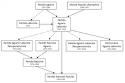 The party was founded in October 1958 by Ibañist politicians as a result of the merger of the Agrarian Labor Party and the National Party.[1] The principle founders were Julián Echavarri, Orlando Latorre, Mario Hamuy Berr and Sergio Onofre Jarpa.[2]