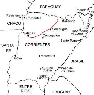 National Route 118 is a national road in Argentina, in the northwest of Corrientes Province. It starts at the junction with National Route 12 until reaching the rural area of Paraje Vallejos Cué for a total length of 196 kilometres (122 mi). The road is marked in red in the map.