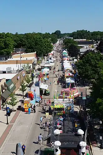 The National Strawberry Festival in Belleville, Michigan, established in 1977, began as a way for local farmers to celebrate their strawberry crops.[2] Taking place over three days, held the third weekend in June, the festival offers many events for people of all ages.[3][4][5] In collaboration with area churches and schools, some of the events include: