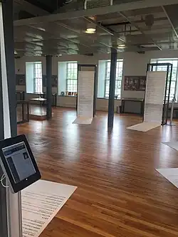 The National Women's Hall of Fame was hosted by Eisenhower College until 1979/1980, when the organization rented out a historic bank building in the Seneca Falls Historic District. The historic bank was renovated to house the NWHF's permanent exhibit, historical artifacts, and offices.[10] In August 2020, the National Women's Hall of Fame opened its door to the third and final home: the historic Seneca Knitting Mill, which resides across the canal of the Women's Rights National Historical Park which includes the Wesleyan Chapel where the 1848 women's rights convention took place, an event that kickstarted the women's rights movement in America.[11][1] This renovation and move into the historic Seneca Knitting Mill took several years to accomplish.
