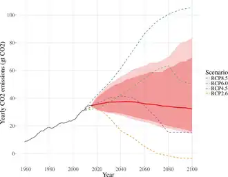 - ^ Rogelj, Joeri; den Elzen, Michel; Höhne, Niklas; Fransen, Taryn; Fekete, Hanna; Winkler, Harald; Schaeffer, Roberto; Sha, Fu; Riahi, Keywan; Meinshausen, Malte (30 June 2016). "Paris Agreement climate proposals need a boost to keep warming well below 2°C" (PDF). Nature. 534 (7609): 631–639. Bibcode:2016Natur.534..631R. doi:10.1038/nature18307. PMID 27357792. S2CID 205249514. Archived (PDF) from the original on 19 August 2019. Retrieved 9 December 2019.
