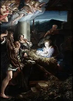 The Nativity (also known as The Holy Night (or La Notte) or as Adoration of the Shepherds) is a painting finished around 1529–1530 by the Italian painter Antonio da Correggio. It is now in the Gemäldegalerie Alte Meister, Dresden, Germany.