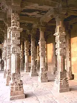 Jain Temple columns reused in the Quwwat-ul-Islam mosque at Qutb complex