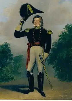 Joseph Smith dressed for official functions and ceremonies of the Nauvoo Legion, painted by Sutcliffe Maudsley -