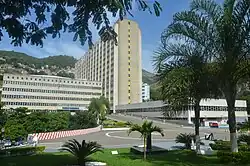 In the same year, with the creation of the Navy Health Fund, the need to build a base hospital was affirmed, and the foundation stone was laid on July 16, 1975.[18][19] Inaugurated on February 8, 1980, the CMNMD continued to provide care and incorporated the School for Nursing Assistants that had been operating at the Navy Central Hospital.[7] Still under the dictatorship, President Ernesto Geisel, in 1979, sanctioned Decree No. 83.161, the institution's school was reorganized and expanded as the School of Health, of higher and medium level, recognized by the Ministry of Education (MEC), with courses in Nursing Assistant and Technician, Residencies in Medicine, Dentistry, Nursing and Pharmacy; as well as courses in Basic Life Support (distance learning) and Operative Nursing.[20] Also in 1979, through Law 5450/79, Geisel signed that the former Experimental Surgery Section became a Department of the CMNMD.[21] In 1981, new facilities were built for the Biomedical Research Institute.[8]