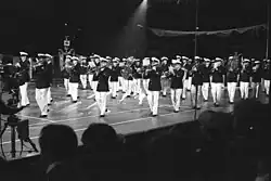 Navy Band Kiel was set up on 1 June 1956 under the designation Navy Band Ostsee (Baltic Sea) in Eckernförde.[6] At the same time, Navy Band North Sea in Wilhelmshaven was established, and was affiliated to the Ostsee Band and was housed in the band's base at Kiel Airport. At first, there was a lack of personnel and instruments, so the ability to continue operated depended solely on cooperation between the two bands. In July 1957, cooperation ended and Navy Band North Sea was able to return to its intended location in Wilhelmshaven. In March 2014, the band in Wilhelmshaven was dissolved and merged with the Baltic Sea Band to become Navy Band Kiel, which became the sole official band of the Navy until 2019, when Navy Band North Sea was reinstated with the new name of Navy Band Wilhelmshaven.