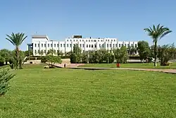 All the facilities and educational institutions of the university are located in the campus, along with the Near East College (middle and high school levels), the Near East Primary School and the Near East Kindergarten.[10][11] The campus is a few kilometres away from the city of Nicosia, accessible through the Near East Boulevard.[12] Transportation between the campus and the city is done through frequent buses that circulate through the city, including Gönyeli and the university.[13]