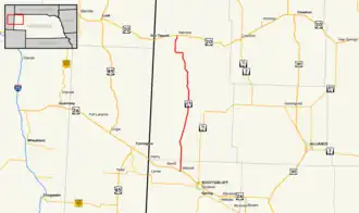 - ^ a b c "Nebraska Highway Reference Log Book" (PDF). Nebraska Department of Roads. 2015. p. 93. Archived from the original (PDF) on February 15, 2020. Retrieved January 7, 2017.