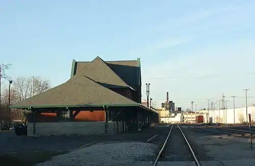 The Neenah station, otherwise known as the Neenah-Menasha station or Chicago and Northwestern Railroad Depot is a historic railroad station located at 500 N. Commercial Street in Neenah, Wisconsin. The station was built in 1892 for the Chicago and North Western Railway. The depot was designed by Charles Sumner Frost in the Richardsonian Romanesque style. Passenger service on the line was ceased in 1971.