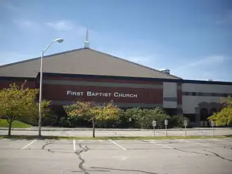 Portland High School, whose original building that is the school's middle wing was built in 1863, and Baxter Academy, a charter high school with a STEM curriculum, are both located in the neighborhood, as is Merrill Auditorium. The state's only Whole Foods and Trader Joe's supermarkets are located in the Bayside neighborhood, on Somerset Street and Marginal Way, respectively. Notable buildings in the Bayside neighborhood include the Schlotterbeck and Foss Building, an historic Art Deco factory building built in 1927 and that is now apartments, and Franklin Towers, a high-rise apartment building constructed in 1969. Greater Portland Landmarks has documented that Bayside has some of the earliest homes in Portland, including Federal and Greek Revival homes, because most of the neighborhood was not burned in the Great Fire of 1866.[6] The City of Portland's former Public Works operation center in Bayside has been redeveloped to be a commercial center comprising restaurants, breweries, distilleries, exercise studios, a bowling alley, and many new apartment buildings.[7]