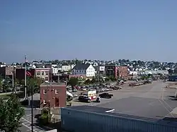 East Bayside is bordered by Franklin Street on the west, Washington Avenue on the east, to the north by Marginal Way, and the south by Congress Street.[13] It is bordered by the neighborhoods of Bayside, the Old Port and Munjoy Hill. It was first developed a street network in the early 19th century. By the 1820s, the area was Portland's second seaport via the Back Cove's ship channel. Much of the debris from the Portland fire of 1866 was deposited into Back Cove, significantly increasing the size of East Bayside. Maps produced around 1900 show an extension of the shoreline out to Marginal Way. The shoreline did not change again until the construction of the interstate in 1974. East Bayside is often confused with Bayside, which is the neighborhood on the opposite side of Franklin Street. East Bayside is represented by the East Bayside Neighborhood Organization.[14]