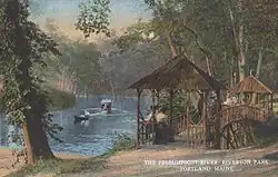 Riverton neighborhood is located in northwestern Portland. The Riverton Trolley Park, established in 1896, was located in the neighborhood. The park closed in 1929. At the time, it was a premier leisure destination. A trolley brought people from Monument Square to the area.[29][30][31][32] A branch of the Portland Public Library is located there as well.[33] Riverton Elementary School serves as the neighborhood school.[34] The University of New England (UNE) merged with Westbrook College in 1996, with Westbrook College's campus in Riverton becoming UNE's Portland Campus. It is home of the Westbrook College Historic District.