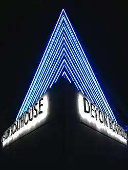 Located off NW 16th Street between Classen Ave. and Pennsylvania Ave., today the Plaza District[10] is a neighborhood commercial district boasting Oklahoma City's local arts flavor and is home to art galleries, studios, retail shops, restaurants, and creative services. Several local businesses in this area are owned by young, creative entrepreneurs. The area is home to the renovated Plaza Theatre, which holds music and theatrical performances for Lyric at the Plaza.[11] Also included in the area are the artist-made retail businesses, a quality custom tattoo shop, a popular local salon, a full-production modern local winery, and many shops for vintage and retro items. This district, once blighted by urban decay now boasts a renewed energy embraced by Oklahoma City's youth and diverse culture. Each second Friday of each month from 7-11 p.m., the district is home to "LIVE on the Plaza", a monthly artwalk featuring live music, featured artists, special events and local shopping.