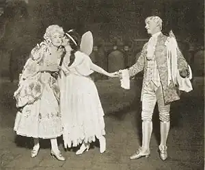 Briercliffe left the D'Oyly Carte company in January 1918 and appeared in London in the musical comedy Pamela, at the Palace Theatre with Lily Elsie and Owen Nares.[10] She then took over the role of Joy Chatterton in the long-running musical The Boy at the Adelphi Theatre.[5][11] She rejoined D'Oyly Carte for the 1919–20 London season, when the company returned to London for the first time in a decade, at the Prince's Theatre, playing all her former roles.[12] In 1920 she returned to musical comedy in London, appearing with Jack Buchanan in Wild Geese by Ronald Jeans and Charles Cuvillier;[13] as Dulcenea in Oh! Julie, composed by H. Sullivan Brooke and Herman Darewski, at the Shaftesbury Theatre;[14] and as the Shepherdess in the children's play, The Shepherdess Without a Heart at the Garrick Theatre, of which The Times wrote, "Many a young heart must have been lost yesterday afternoon to Miss Nellie Briercliffe. … She looked delightful, she sang sweetly, and she acted so prettily that there was a general sigh of regret when she became a china figure once again."[15]