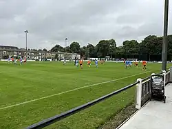 In the summer of 2024, the ground received some major improvements with the construction of a new stand behind the near goal across from the clubhouse, alongside new concrete hardstanding around the perimeter of the pitch.[22] A new heated sponsors lounge was erected along with a food and drink kiosk.[23] The original clubhouse was also demolished and replaced with a new building and toilet block at the top end of the pitch which was part of a £250,000+ investment in the club from the new owners, Chris Price & Stewart Fort.[22] The ground now also has a large screen placed on top of the clubhouse which enables match replays to be displayed along with a scoreboard, which was a rarity in the North West Counties League at the time.[22] As part of the refurbishment the pitch was also upgraded with a robust drainage system installed to help keep the playing surface in better condition all year round.[24]