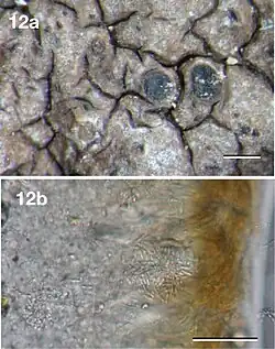 Image of holotype specimen, showing a) habit and b) an ascus with ascospores.
