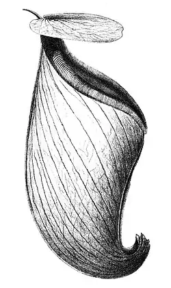 Between 1881 and 1905, Frederick Manson Bailey described 11 species of Nepenthes from northern Australia,[4] all of which were placed in synonymy with N. mirabilis by B. H. Danser in 1928.[5] The only taxon which Danser considered to possess morphological characters atypical of N. mirabilis was N. rowaniae. He wrote:[5]